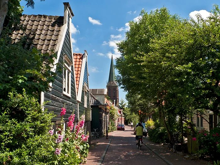 Заедем на один из специальных «пунктов отдыха» для велосипедистов и к стоящим прямо посреди полей прилавкам с самодельными сувенирами, клубникой или кабачками и тыквами, около которых — ни души. Узнаем, как работает такое самообслуживание. Через дамбу — тут-то вы и увидите, насколько ниже уровня моря мы живем, и это очень впечатляет — доедем до восхитительного рыбацкого городка со старинной ратушей, жанровой уличной скульптурой, яхтами и рыбацкими лодками. А какая здесь селедка! А копченый угорь! Это непременно стоит попробовать.